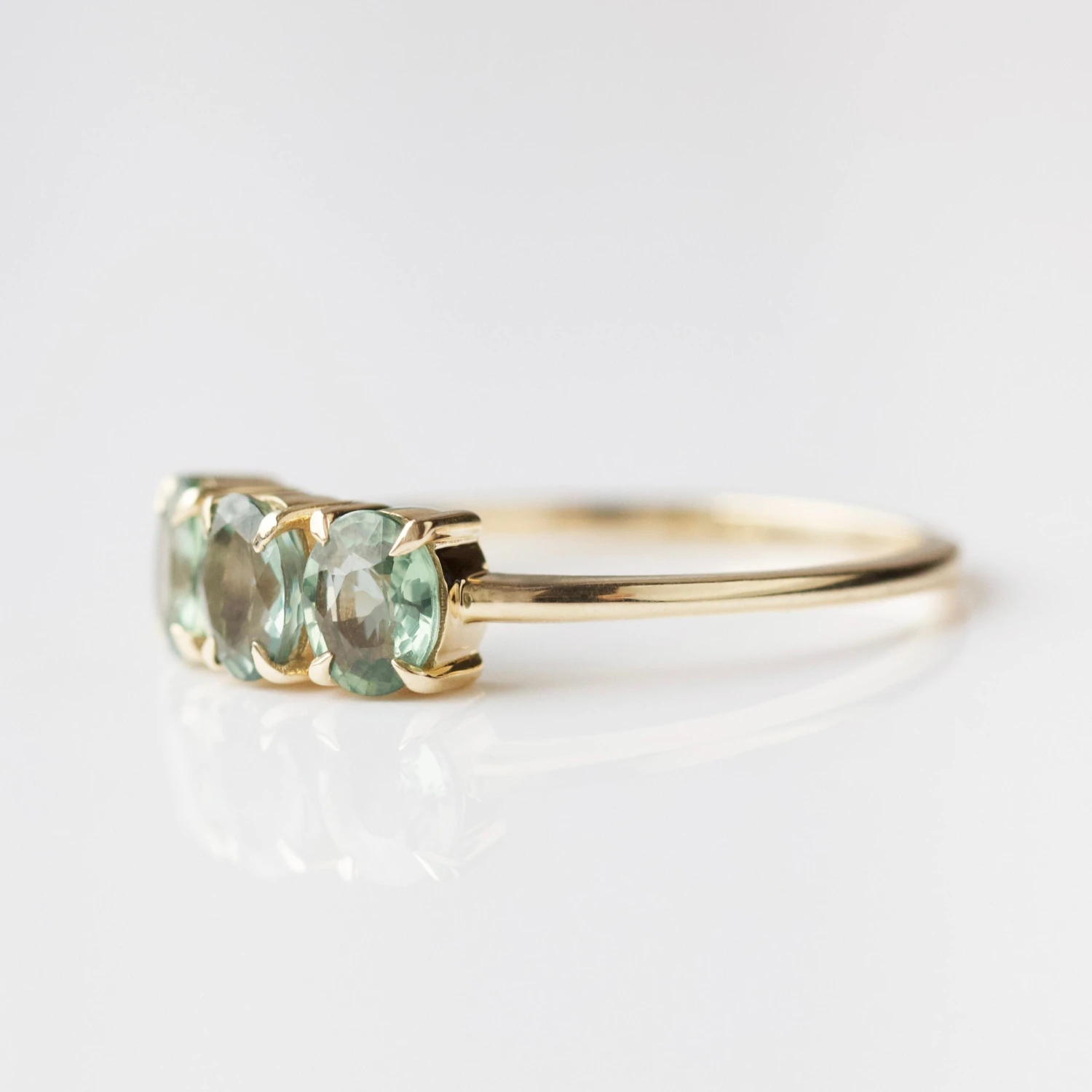 Enough to make anyone green with envy! Three sparkling sapphire stones are a beautiful blend of timeless elegance and contemporary charm