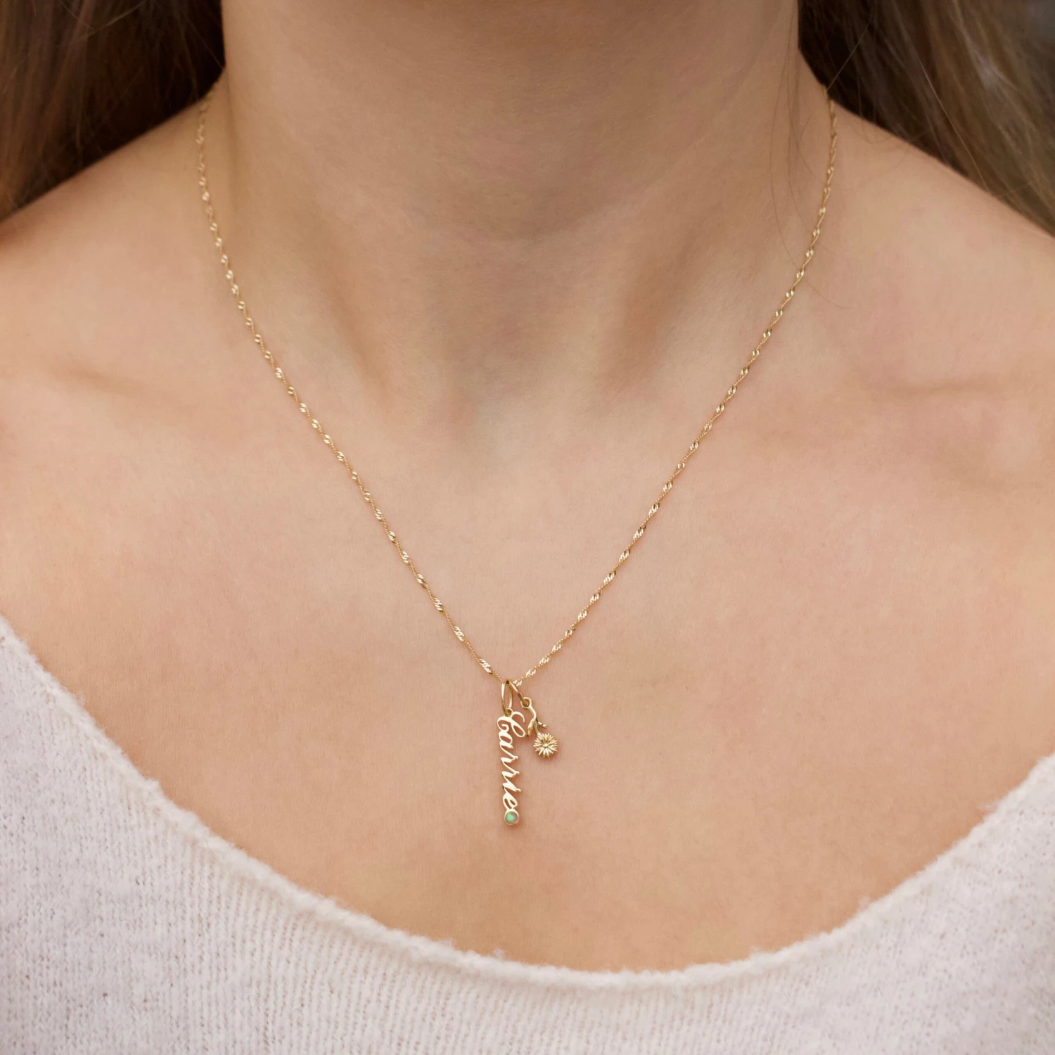 Our beautifully crafted name and birthstone charm adds some sparkle to your personalised look!Â