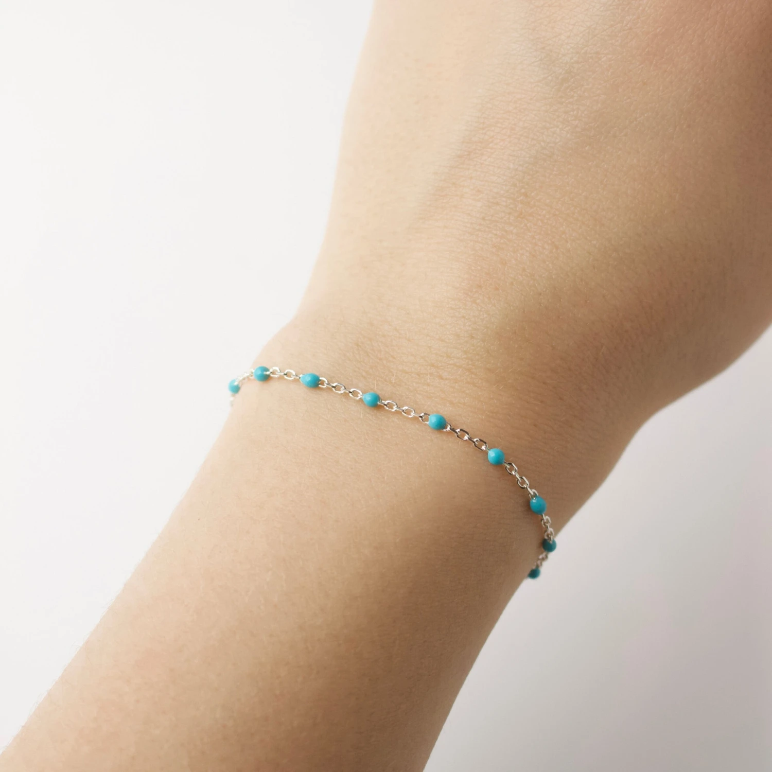 Dainty drops of beautiful blue enamel adorn this chain bracelet, the perfect piece for adding a touch of summer colour to your layering look!
