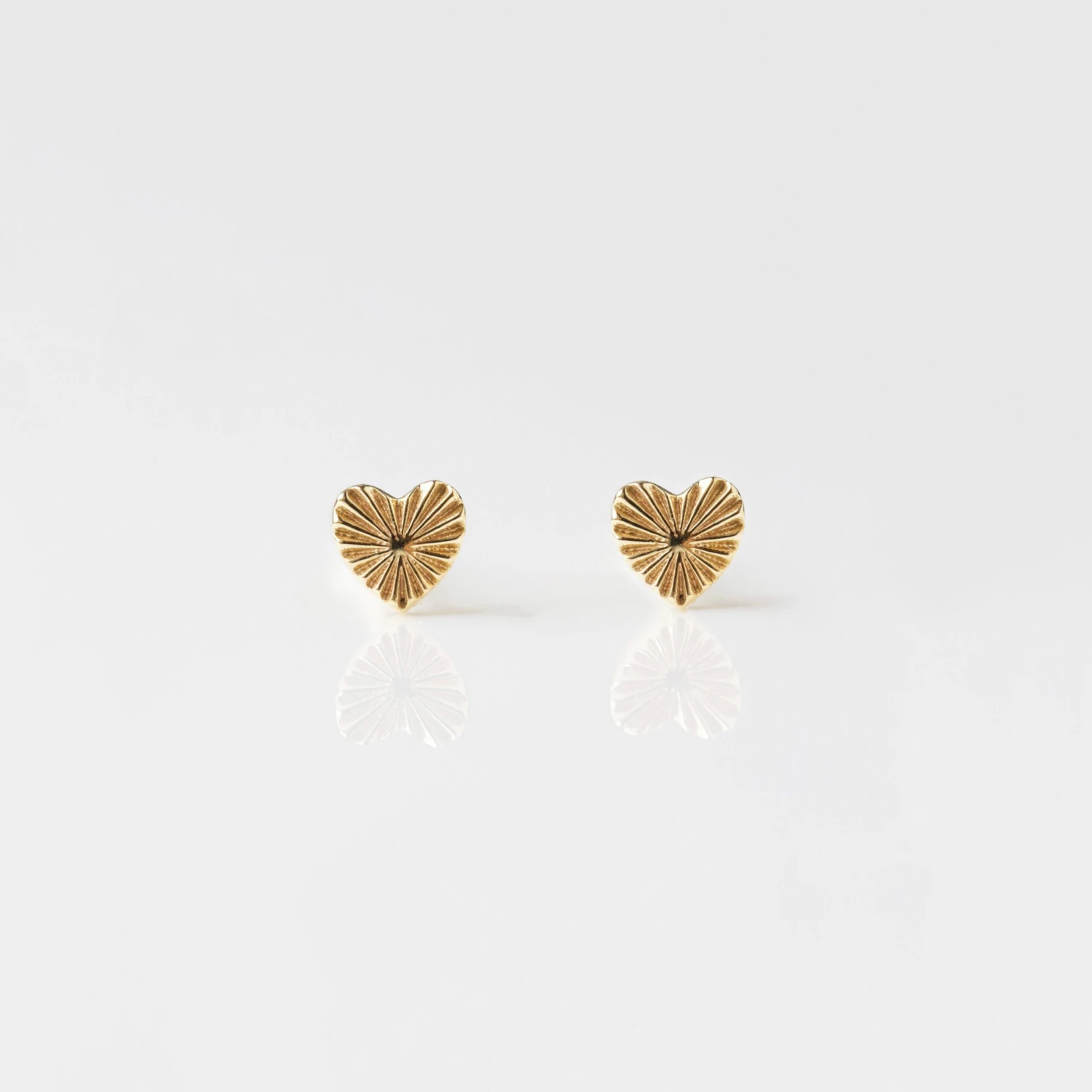 We love our dainty love heart studs with gorgeous sunray diamond cut design! Simple, stylish and perfect for curating an ear stack with our other solid gold earrings. A gorgeous symbol of everlasting love.Â