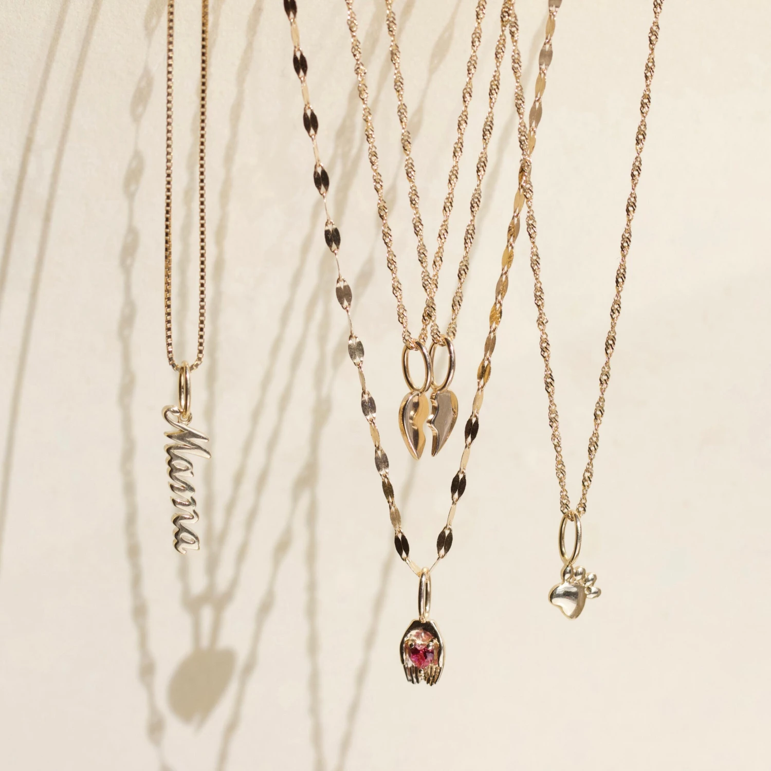 Select your charms and then choose your favourite solid gold chain to wear them on. Our super sparkly 9k Singapore chain, Octagon box chain and Petal chain make the perfect canvas to tell your story!