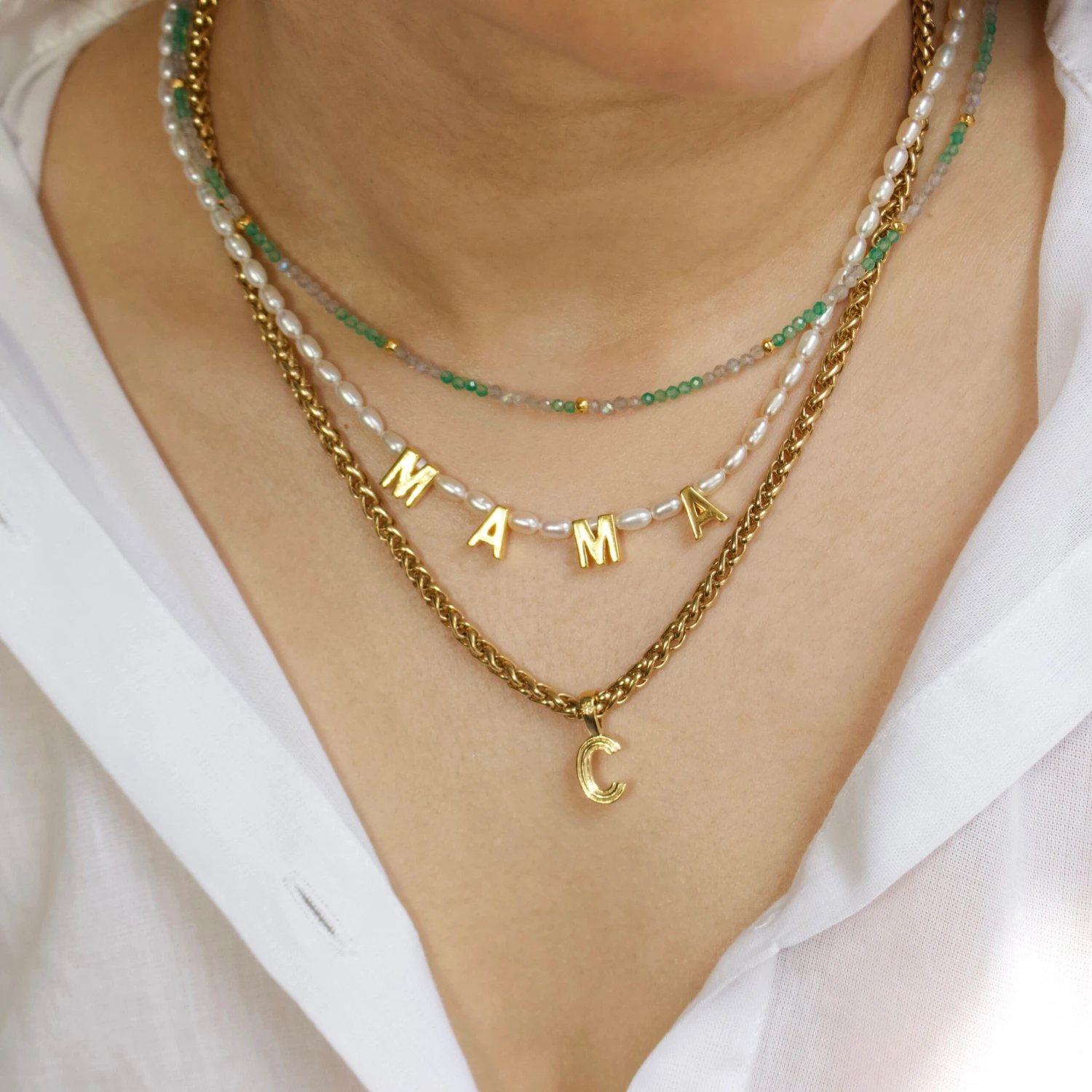 Mama, the sweetest word you’ll ever hear. It embodies love, strength and compassion! Our Mama necklace is made with beautifully iridescent freshwater pearls and is the perfect piece to keep close to your heart!Â