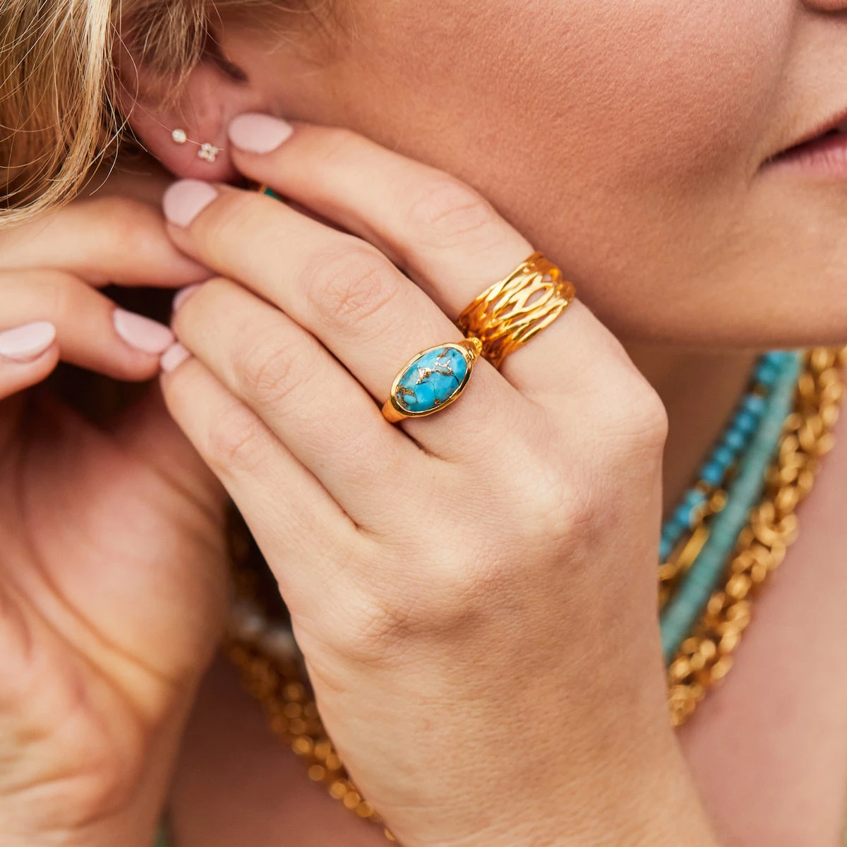 Make a statement in mesmerising copper turquoise! Beautifully faceted, this stone is the colour pop your jewellery box needs