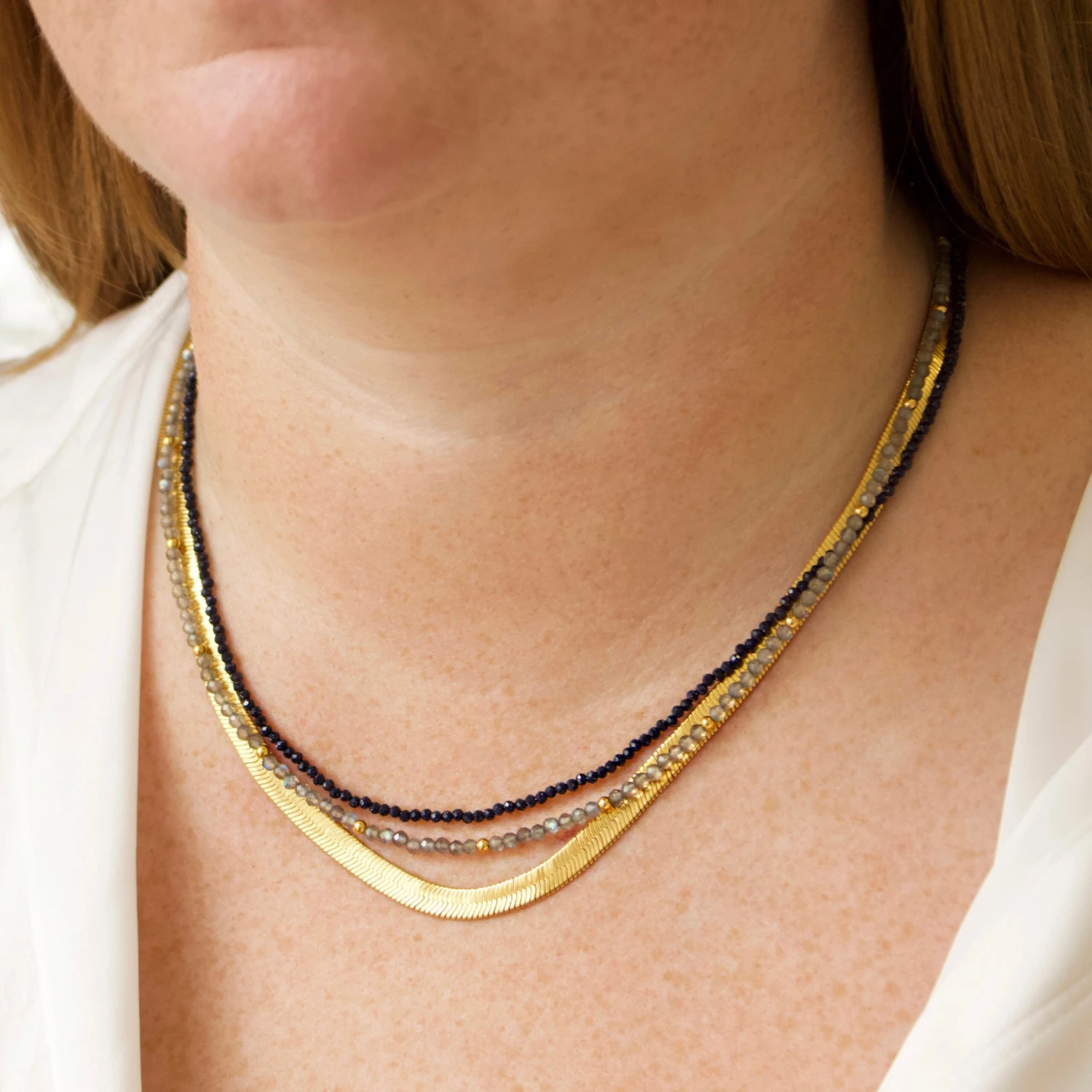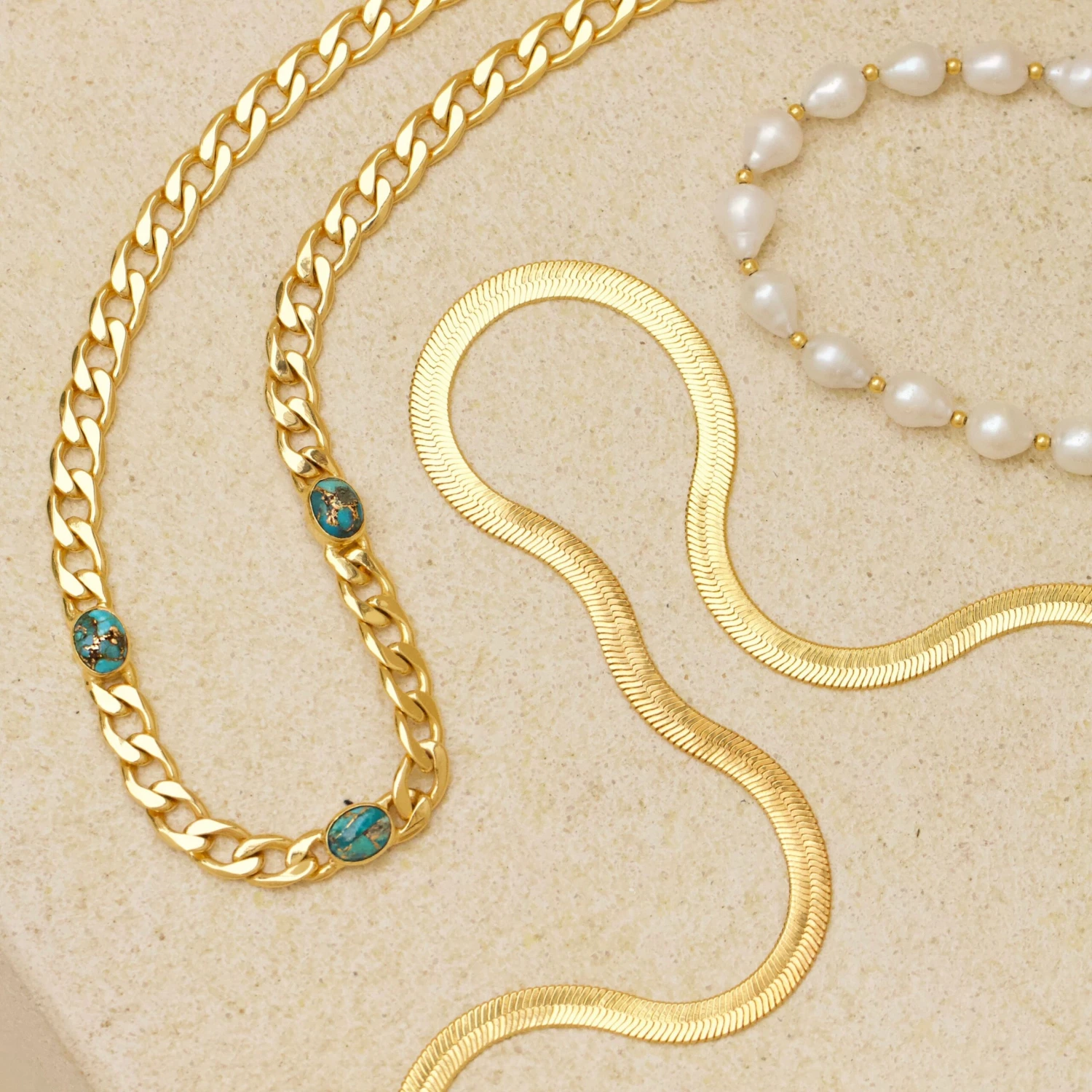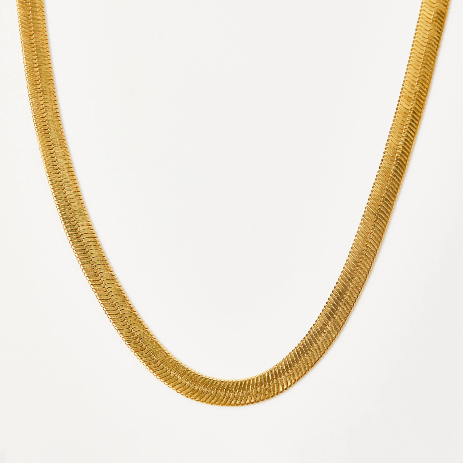 Our slinky herringbone snake chain glistens as it catches the light, making it the perfect addition to your layered look