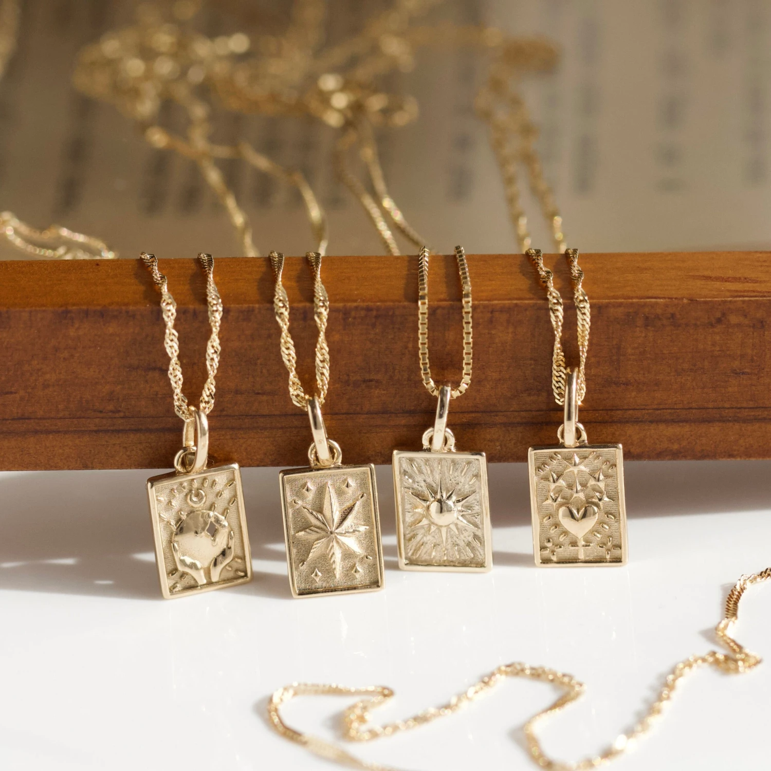 Select your charms and then choose your favourite solid gold chain to wear them on. Our super sparkly 9k Singapore chain and Octagon box chain make the perfect canvas to tell your story!