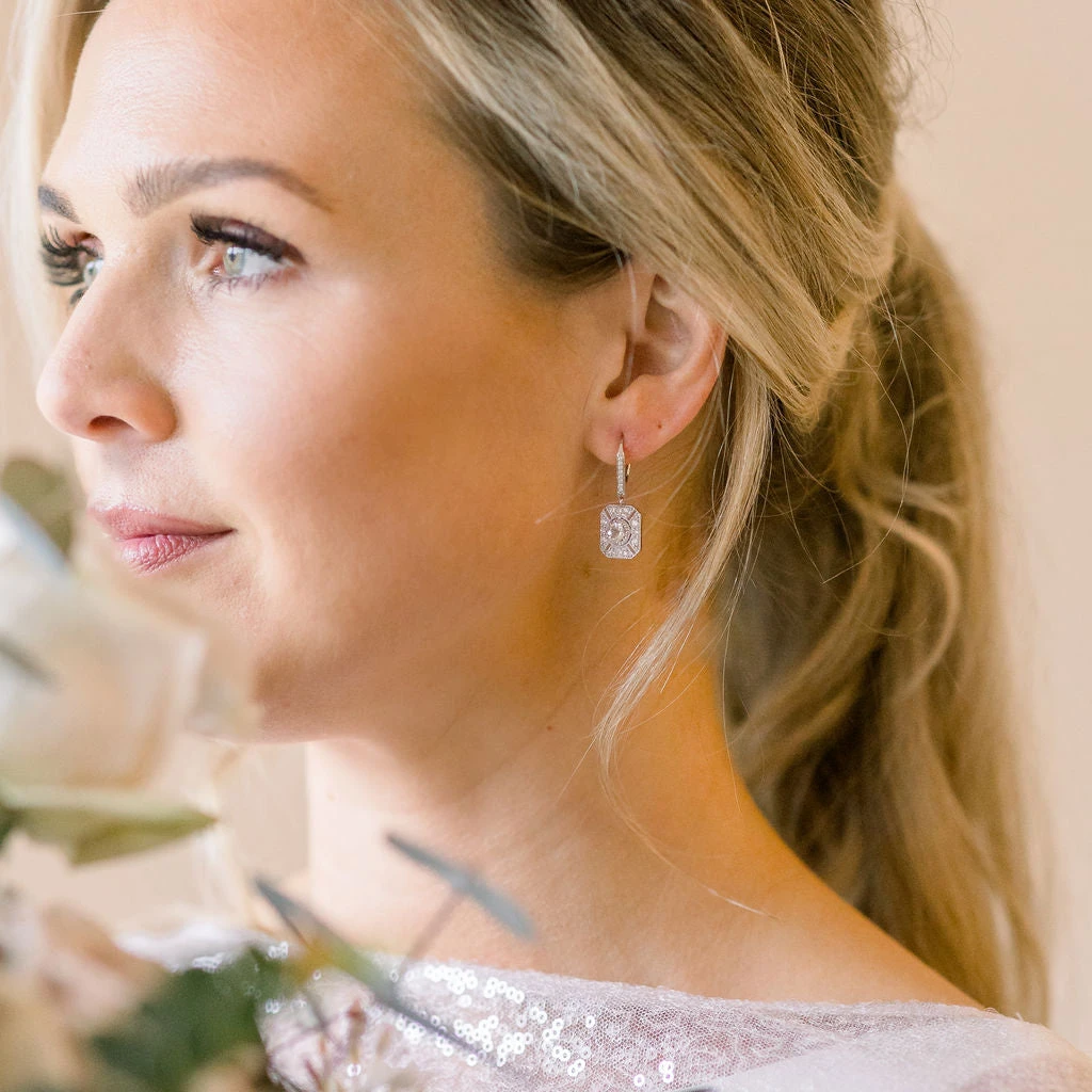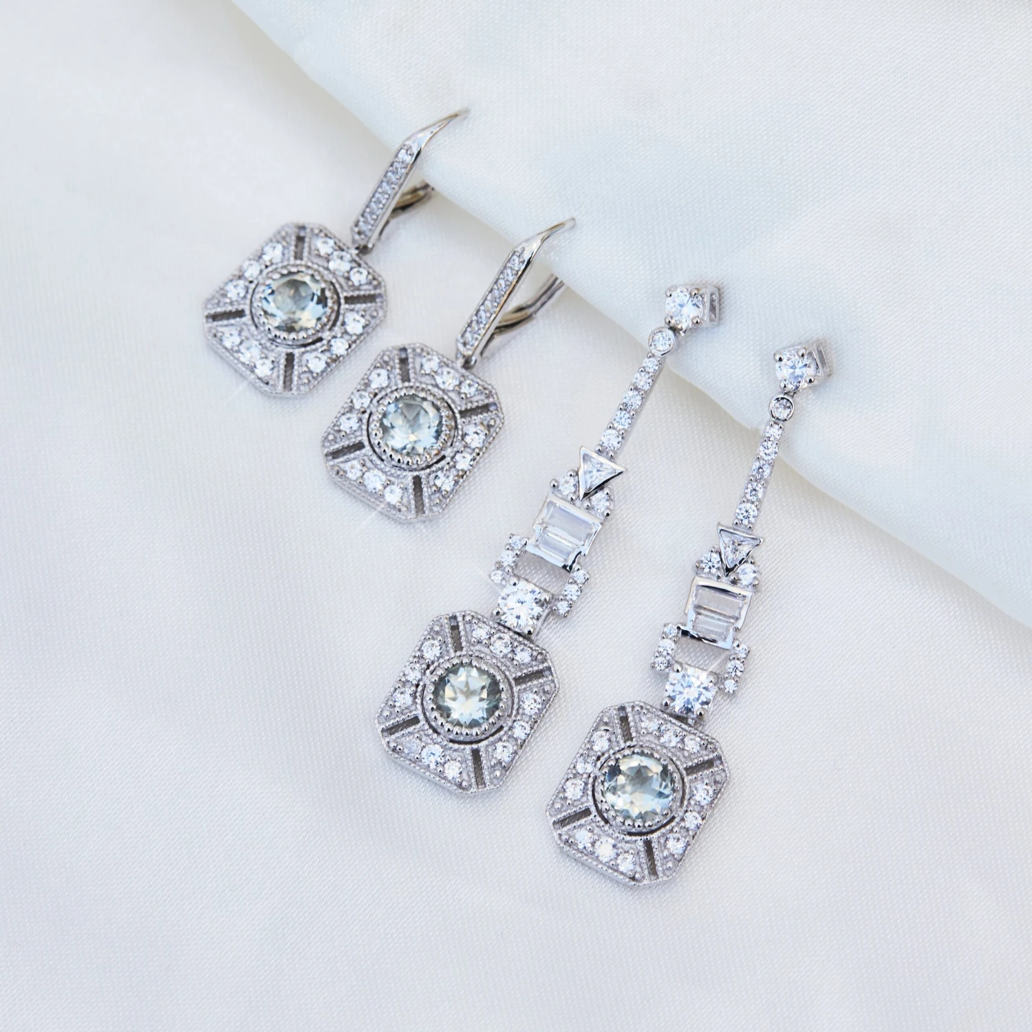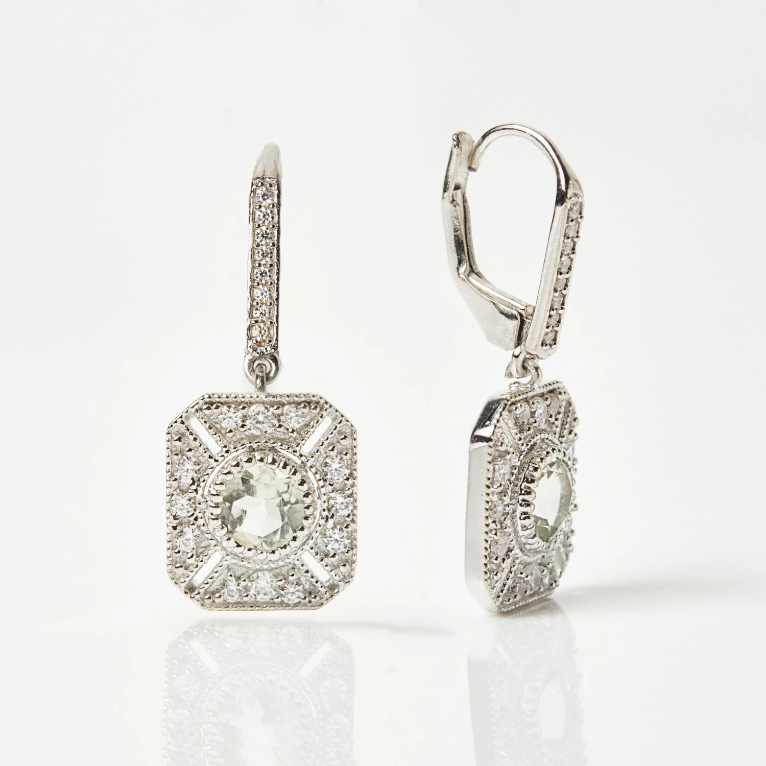 Add a touch of old school glamour to your everyday look with our vintage inspired, statement beauty! A subtle Green Amethyst center is surrounded by sparkling Cubic Zirconia stones in this seasons must have, Venus earrings.
