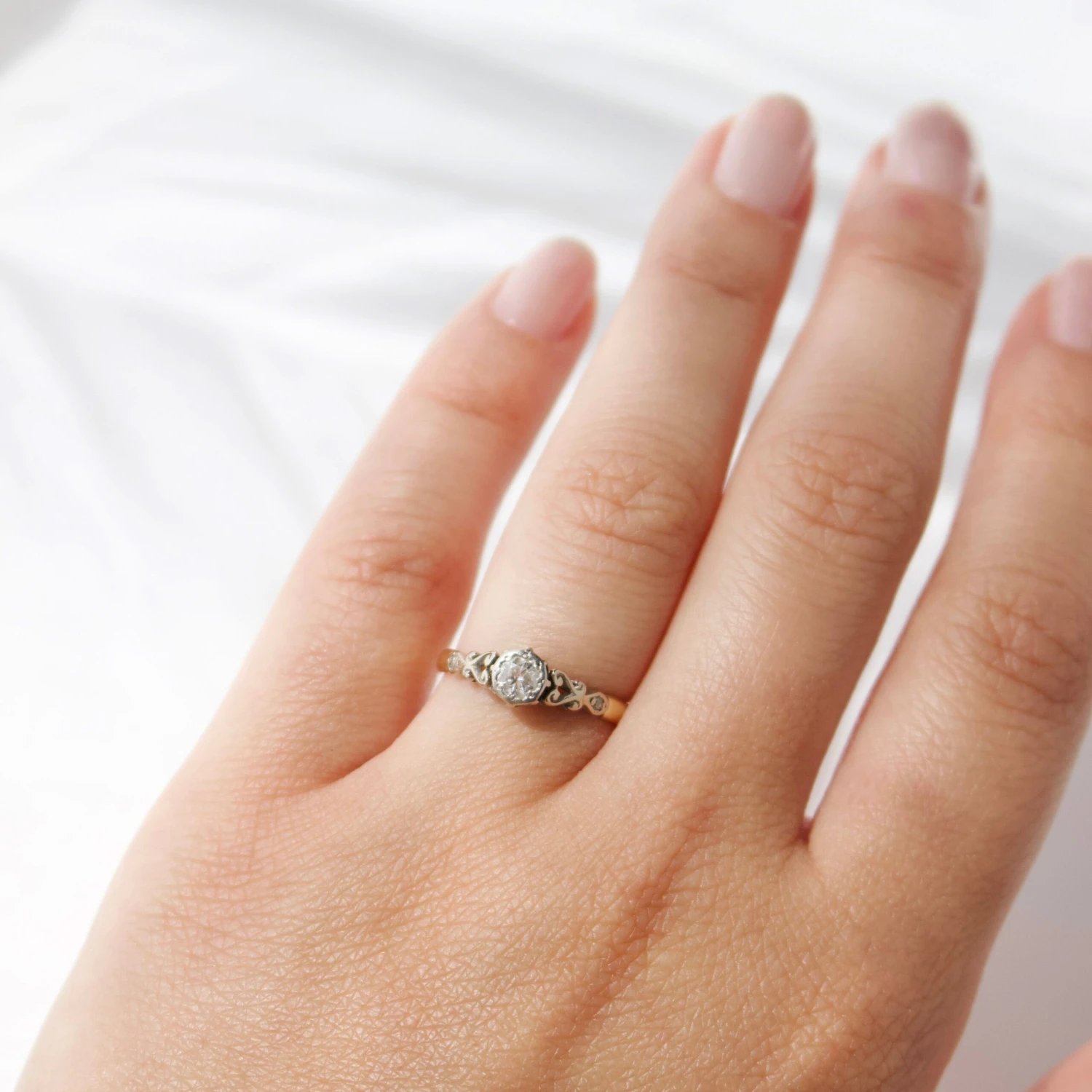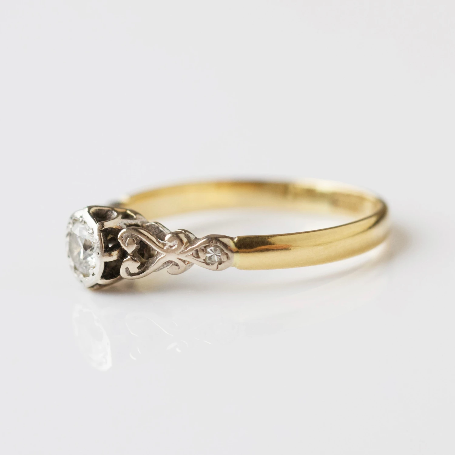 Vintage 18k Yellow Gold And Platinum Diamond Ring – Uk Size K