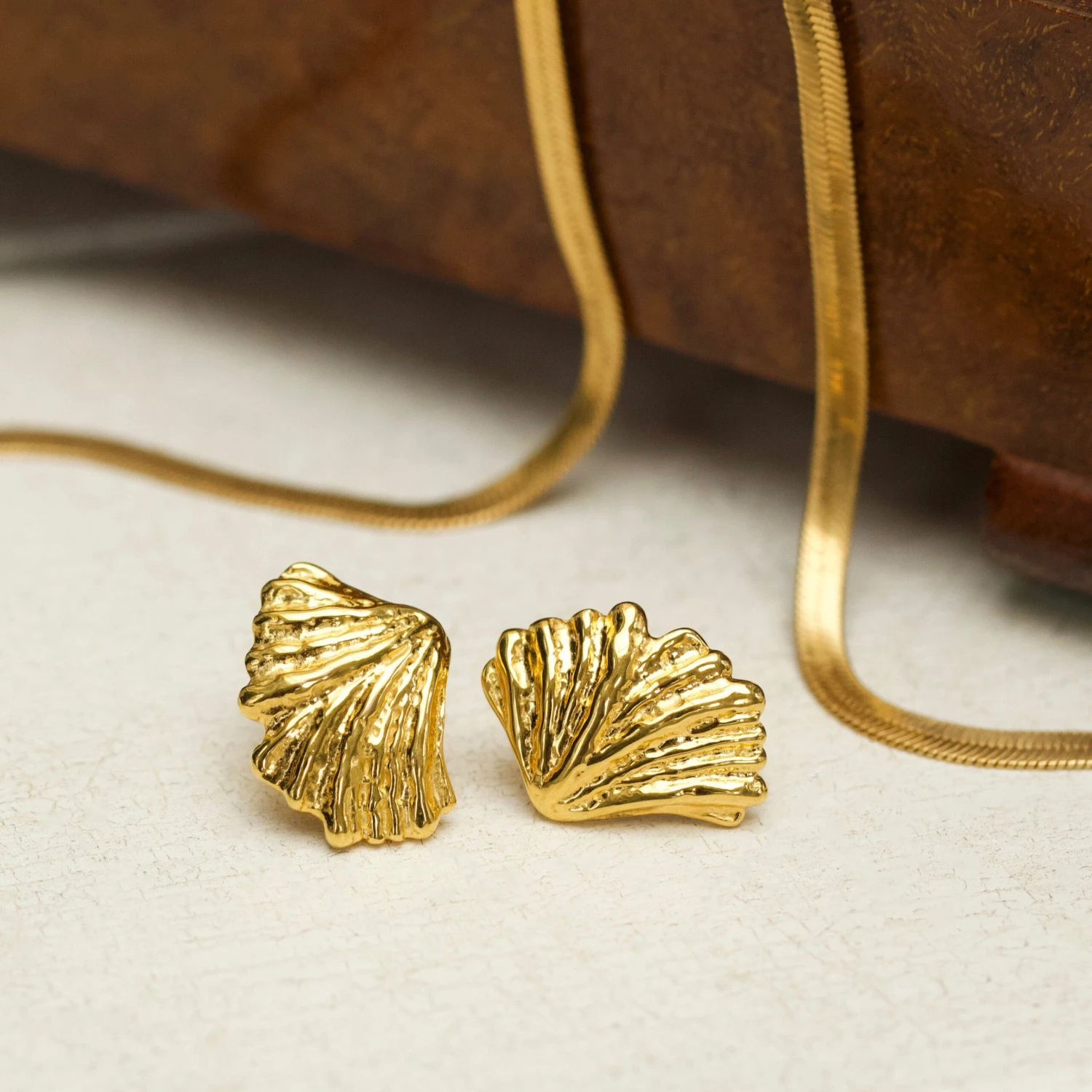 Find your inner goddess with our golden vintage fan earrings! The perfect pair to elevate your look, day or night.Â